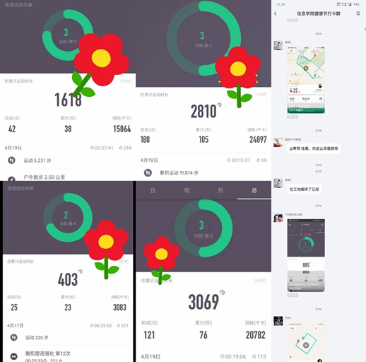 各级学生组织同时发起“调整作息、运动打卡”的号召,为迎接返校学习做准备。通过号召,各级学生组织建立了运动打卡群,有百余名同学们加入了运动打卡的队伍,更有不少同学们因为有此结伴鼓励的力量,调整作息,早起锻炼。同学们表示,开学在即,想以最饱满的状态投入到这次特殊的返校学习中,用实际行动为“战疫攻坚”发挥应尽力量。