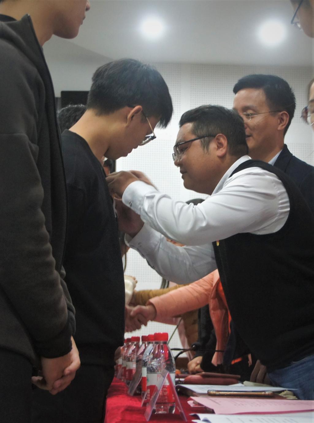 团校在庄严的中国共青团团歌中拉开帷幕,在全体学员起立奏唱团歌后,由到场的各位老师为学生代表佩戴团徽。