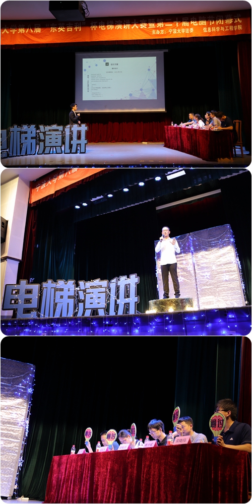 团委、学生会承办。大赛受到校内外各界的广泛支持,强大的评委阵容为更是为此次大赛增光添彩,出席本次大赛的评委有:宁波东英吉利有限公司副总经理,徐振涛先生、可可豆网络创始人,教育行业投资人董昊先生、色漫网