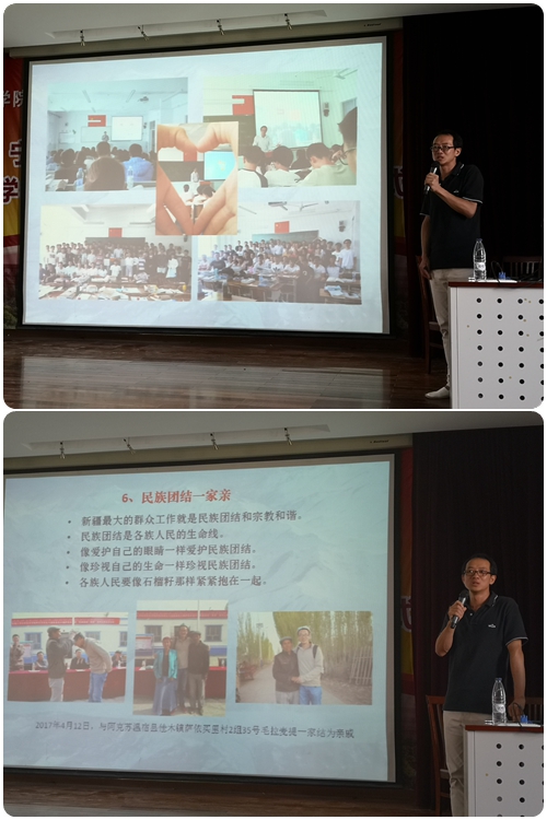 党委举办了援疆教师报告会。邀请在新疆支教了一年半的通信系老师李军为学院师生党员作专题报告。