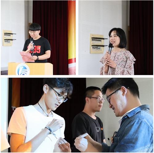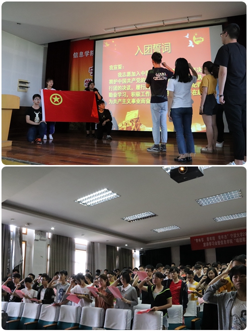 活动在响亮的团歌合唱声中进入高潮,奏唱团歌后,在主持人的带领下,团员们进行入团宣誓环节,重温入团仪式,并由学院老师为团员代表佩戴团徽。接着,马克思主义学院理论宣讲团郝嘉瑜进行了激情的宣讲,鼓励色漫网