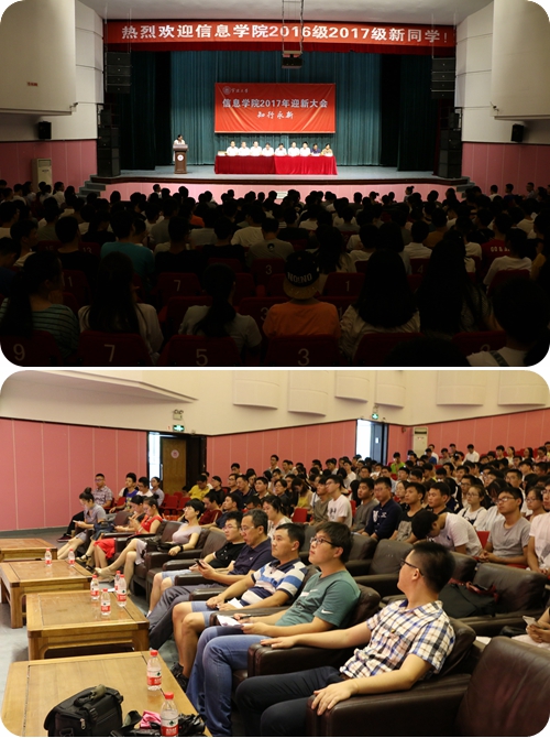 2016级2017级新生迎新大会在林杏琴会堂隆重举行。学院领导、各系所负责人、班主任、学科办、教务办、学工办、及204名研究生新生和270名2016级本科生参加了迎新大会。迎新大会由学院党委副书记屠春飞主持。