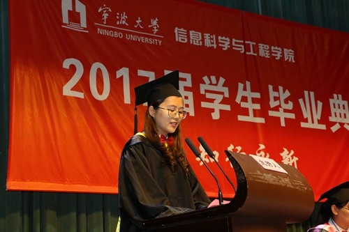 在学院表彰了2016、2017年度的“最美信息人”获奖者后,高尚超、张慧慧同学分别代表研究生、本科毕业生发言,感谢母校栽培之情,师长教育之恩。教师代表郭立君老师上台发言祝福毕业生们放飞梦想。