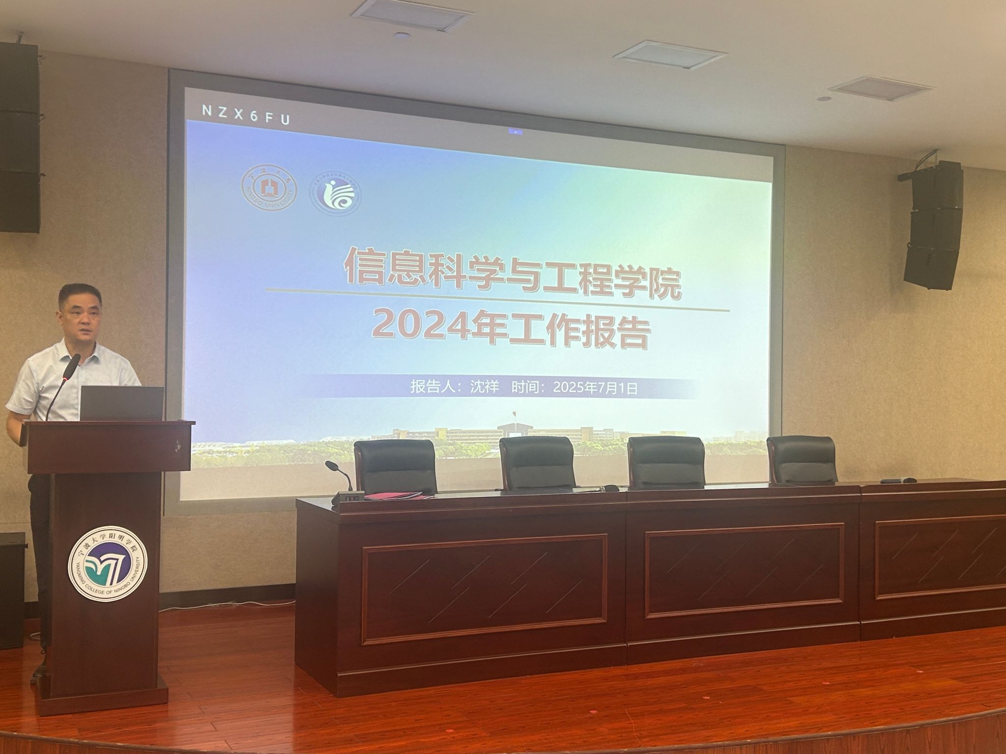 2024年工作报告》工作报告。沈祥以《笃行实干结硕果 踔厉奋发启新程》为题,全面介绍了2024年学院在党建、教学、学科与研究生教育、科学研究、师资队伍建设、学生工作、对外交流等方面取得的成就。沈祥指出,2024年学院各项工作取得了显著成效,未来,学院要以迎难而上的魄力和锐意进取的拼劲,以久久为功的恒心和善作善成的智慧,奋力实现2025年各项目标任务,推动学院发展再上新台阶!