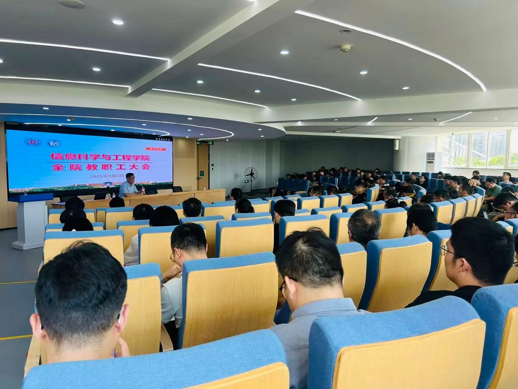 在北校区杨咏曼楼3楼报告厅隆重召开新学期全体教职工大会。会议由学院党委书记王伦耀主持。