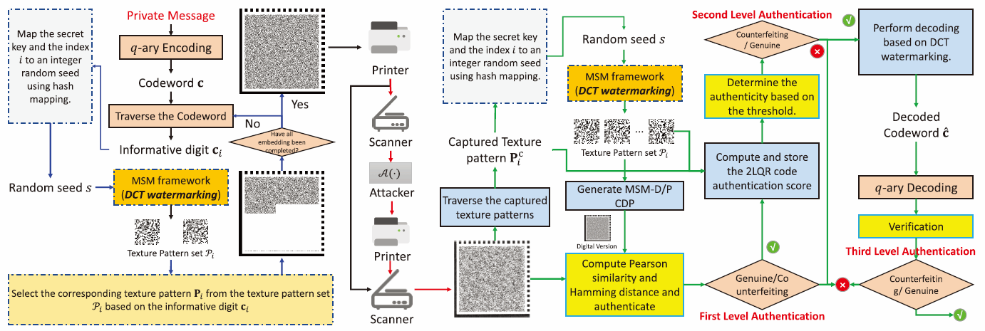 图1 复制敏感图形码在纸质文档认证中的总体流程与物理非法复制检测