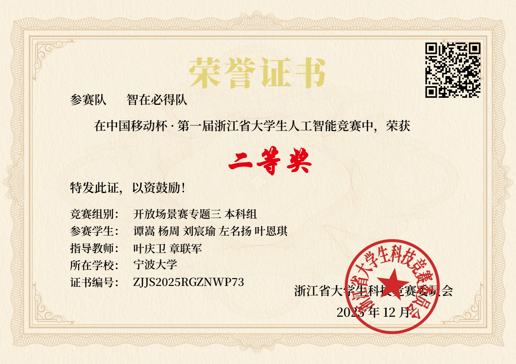 浙江省大学生人工智能竞赛是今年首次开设的赛事,设立了算法挑战赛、场景应用挑战赛和创意赛三个赛道。其中算法挑战赛设置3个赛题供选手选择,分别面向低空经济、信息安全和行为安全等前沿领域,聚焦企业实际需求,旨在通过竞赛加速AI技术的落地应用与成果转化。场景应用挑战赛含“开放专题”和“揭榜挂帅”两个赛项,“开放专题”赛项根据浙江产业需求,遴选四大专题21个场景,与企业需求紧密集合;“揭榜挂帅”赛项聚焦智能体、四足机器人、智能制造等领域,联合大型国有企业、行业龙头企业等共同发布赛题。创意赛围绕浙江省“315”科技创新体系建设工程和“415X”先进制造业集群的建设需求,依托“钉钉”、“网易”和“MaxKB”平台,构建人工智能赋能应用场景。