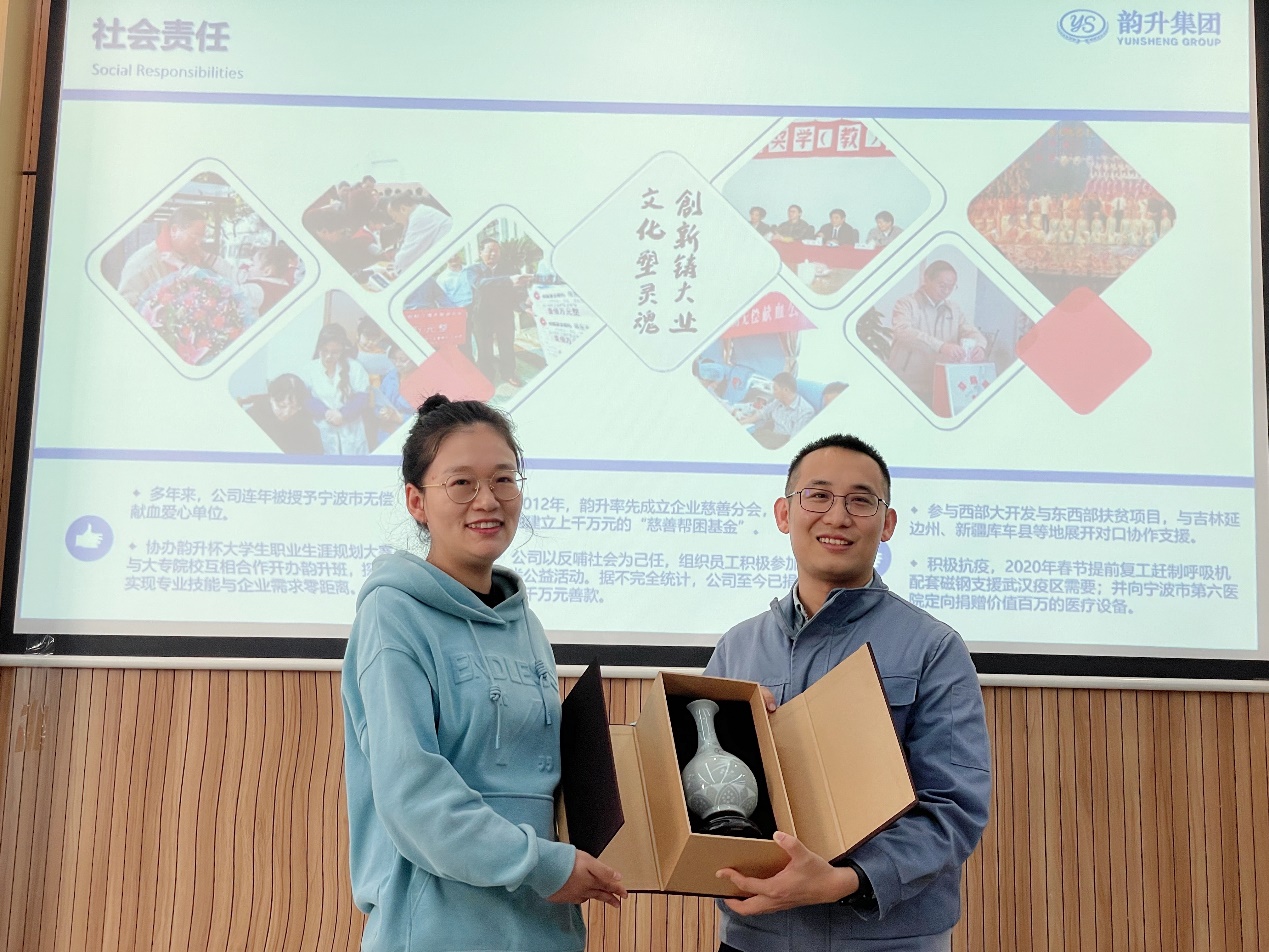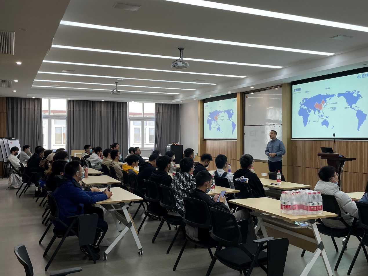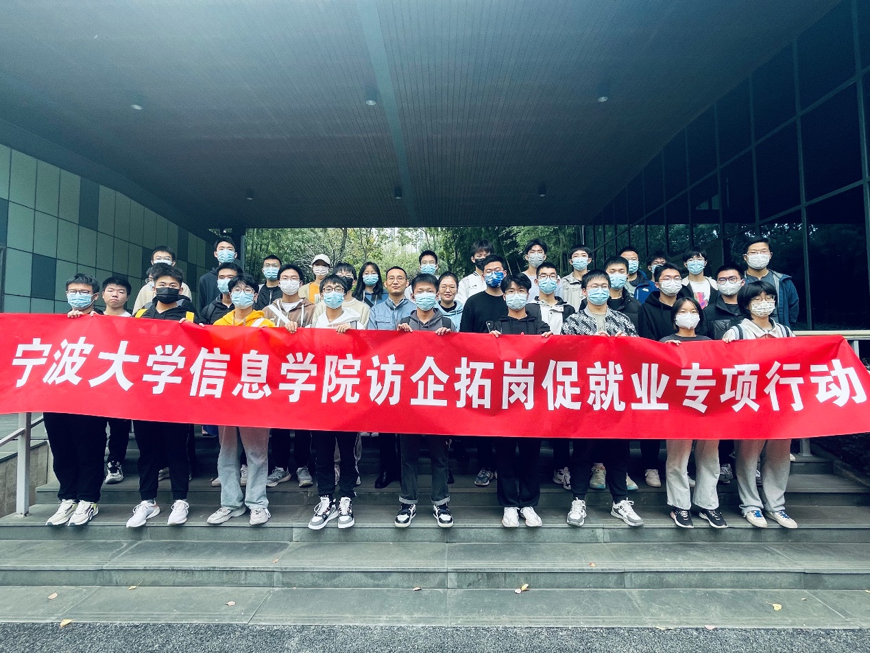 访企拓岗促就业专项活动, 11月23日下午,学院就业办汪小静、学工办严炜韬带领30余名信息学子前往宁波韵升股份有限公司与校友深入交谈,进一步加深同学们对就业形势的了解和对企业招聘的认识。