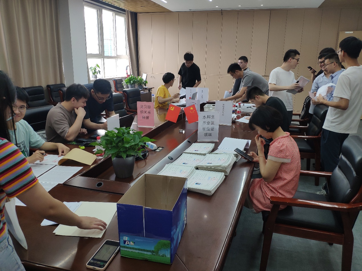 教务办、学工办、学科办、团委等各部门合作办公,集中在学院610会议室办理离校循环、三方协议网上审核、报到证开具、毕业证学位证发放、党团组织关系转接、档案派遣咨询等事务,实现毕业生一次就办完所有离校相关事务。