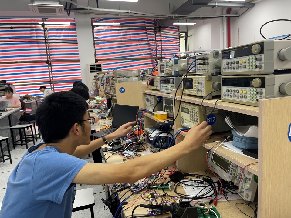 大二大三的学生,他们经过专业课程学习和一个月的选拔培训,根据培训项目的完成情况和理论测试成绩选拔进入,冒着酷暑,在北区忻元甫楼的大学生电子设计创新基地中参加一个月的暑期强化训练,经历作品制作及测评、综合测评、全国复测层层筛选获得佳绩。