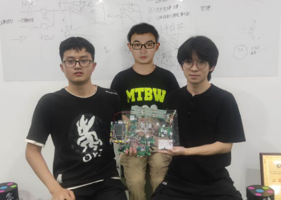 林瑞彦(获国家一等奖):酷暑下紧张有序的集训,4天3夜不眠的战斗,至今难忘。8月2日7:30赛题在网站上公布,我们组在H题和B题之间犹豫不决,通过查阅资料、分析讨论终选B题,搜索并运用网络资料确定大致方案后,分工协作,争分夺秒,虽然在中途出现过意见分歧,在作品制作过程中也出现种种卡壳问题、困难重重,但小组三人共同面对,互相包容,通过比赛提高了我们针对实际问题进行电路设计、电子装置制作的综合能力,也提升协作、知识融合的能力,很感谢谢建军等老师培训比赛期间全程指导和服务。