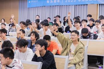 华为浙江终端宁波区域HR吕昕颖和宁波同城花粉俱乐部部长任旭磊围绕着“职业生涯规划”“校园生活”等大学生普遍关心的话题,与同学们进行深入探讨,并介绍简历制作和高校花粉俱乐部,通过职场礼仪、目标制定等,提升商业世界的素养,成为出彩职场人,让大家对未来的职业规划有了更清晰的认知。”,为同学们的职业规划和校园生活进行赋能。