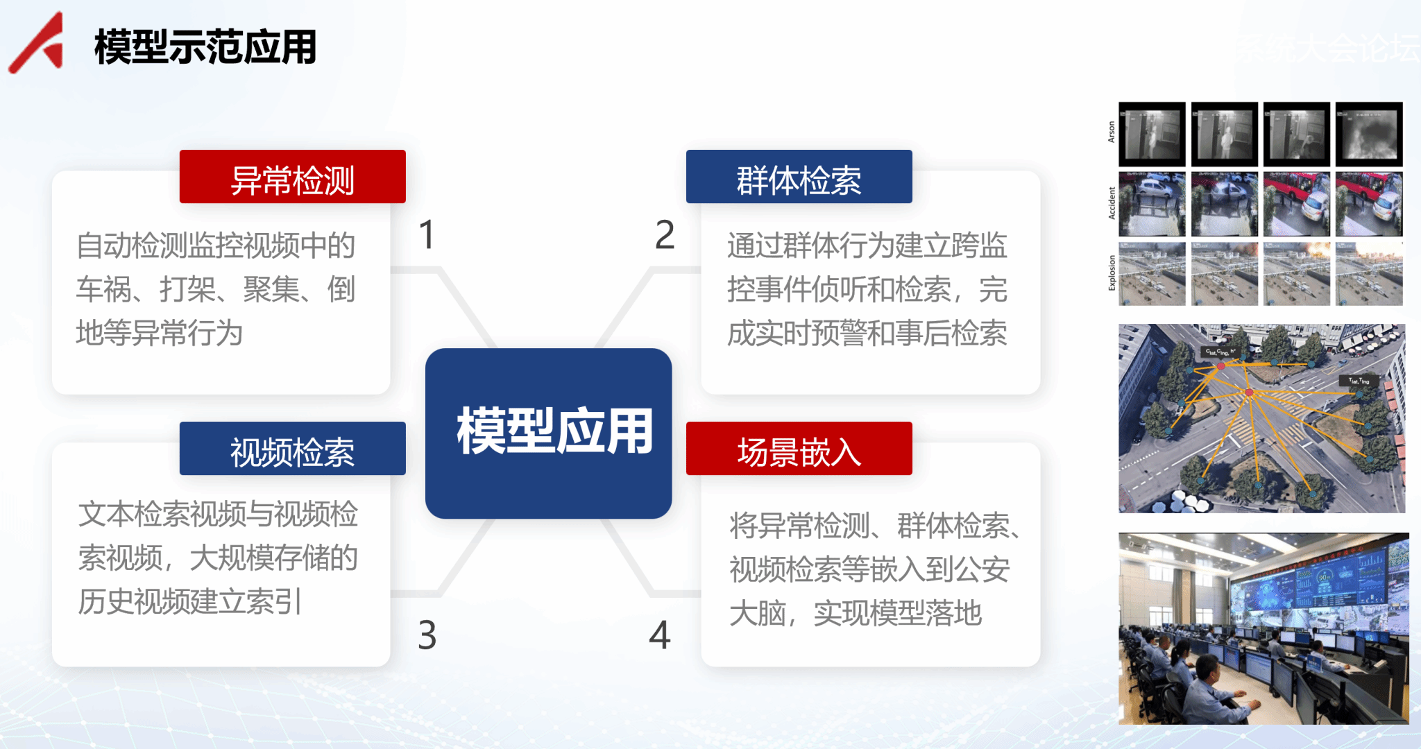 团队致力于通过探索AI、计算机视觉、大数据分析等前沿技术,构建面向监控领域的视觉大模型,尤其是面向国产全AI基础设施的监控视频统一特征表示大模型结合基于多模态融合的视频序列中事件检索、真实复杂视频环境下异常检测多种视觉下游任务模型,为智慧城市、公共安全、交通管理、智能制造等多个领域提供智能化、自动化的监控解决方案,助力社会高效运行与可持续发展。团队研发的“风华·苍鹭”视觉大模型是全球首个基于昇腾AI的视频场景理解大模型,初步建成基于华为生态的人工智能大模型全流程使能体系。该模型已经在2023世界人工智能大会发布,获得2023年华为昇腾应用竞赛浙江省金奖。