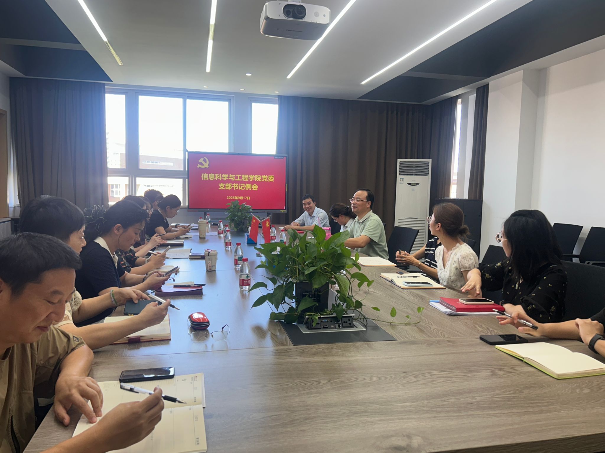 在杨咏曼606会议室召开2025年9月党支部书记例会。学院党委书记王伦耀主持会议,学院党委副书记李洁、各党支部书记、组织员参会。会议以“深化理论学习、细化工作部署、解决实际问题”为核心,通过第一议题学习、任务部署和交流研讨,为学院下一阶段党建工作指明方向。