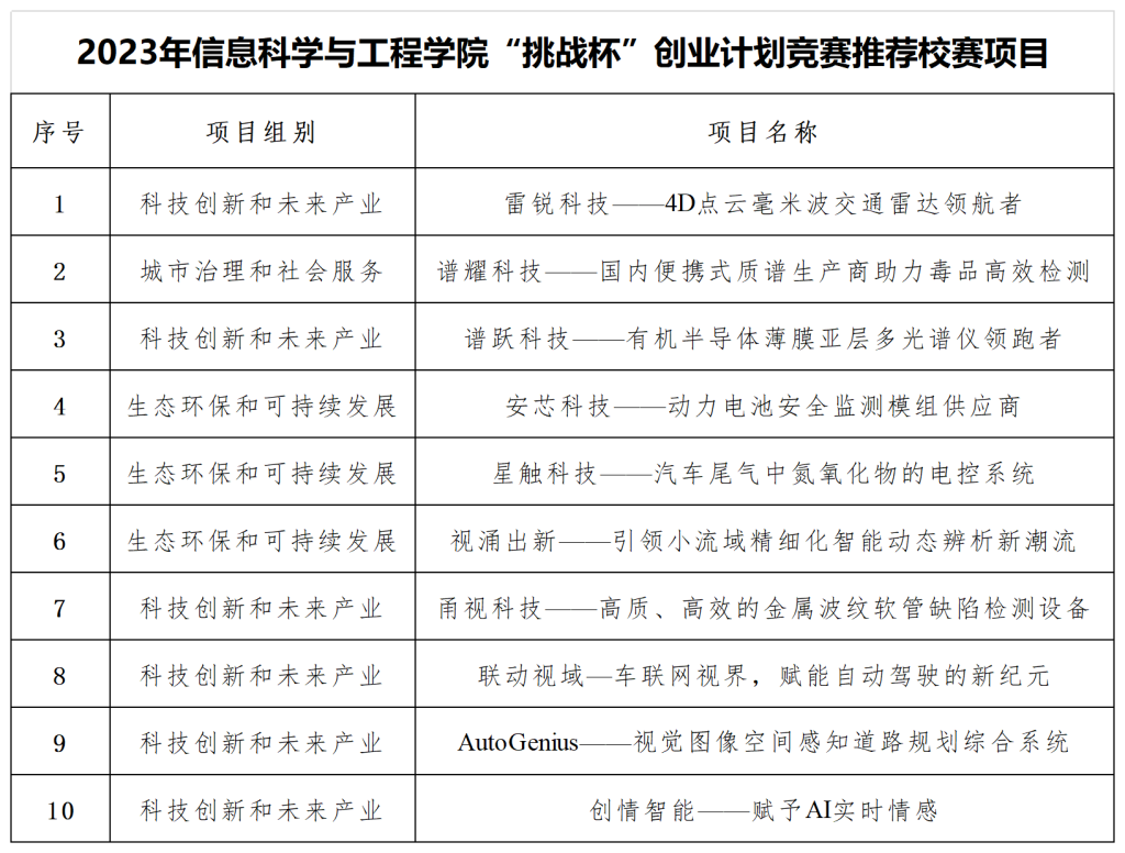 经团队申报、学工资格审查和线下评审环节,学院拟推荐以下10个项目参加2023年色漫网 “挑战杯”大学生创业计划竞赛,现予以公示(见下图)。公示期至2023年11月27日,公示期如有异议请联系学工办史远,[email protected]/667131。