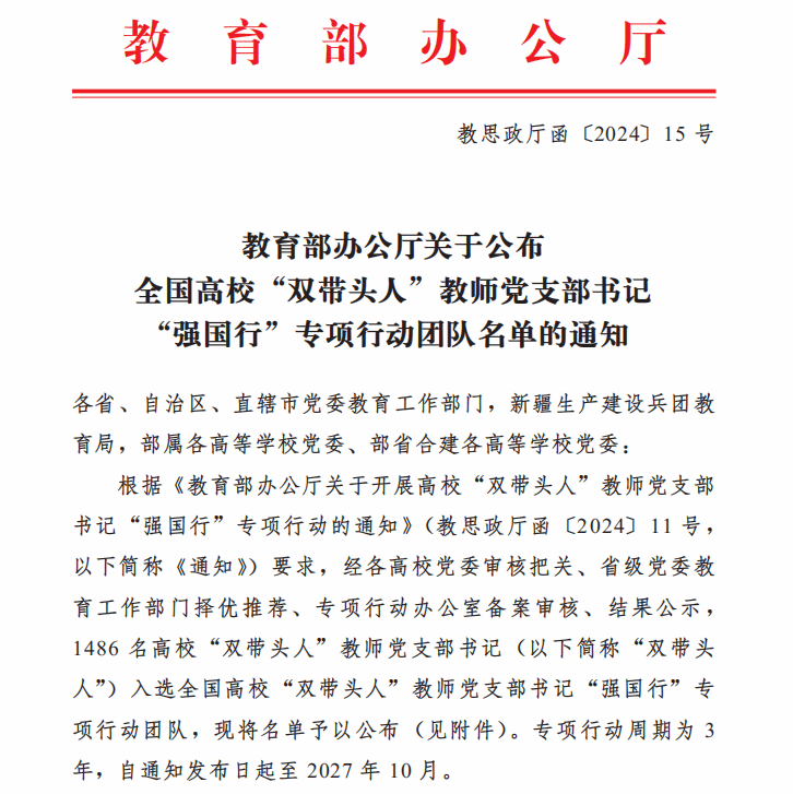 近日,在教育部公布的全国高校“双带头人”教师党支部书记“强国行”专项行动团队名单中,色漫网